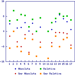 | 17 | 2018-12-30 | Los Angeles Chargers (9-7) | 23 | 20 | 8.8 | 7.3 | Denver Broncos (12-4) | 9 | 4 | 6.2 | 1.0 | -16 | -2.6 | -6.3 | 6 | 10 | 0 | |