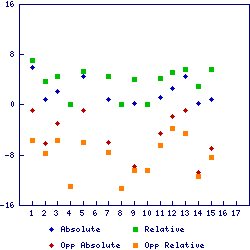 | 14 | 2012-12-09 | Atlanta Falcons (7-10) | 20 | 18 | 11.4 | 10.8 | Carolina Panthers (7-10) | 30 | 1 | 3.0 | 0.2 | -17 | -8.4 | -10.6 | 4 | 9 | 0 | |
