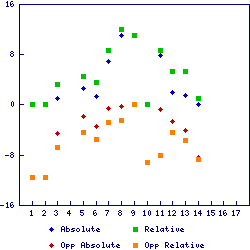 | 6 | 2014-10-12 | Pittsburgh Steelers (12-4) | 10 | 15 | 5.5 | 3.4 | Cleveland Browns (4-12) | 31 | 9 | 3.6 | 1.3 | -6 | -1.9 | -2.1 | 3 | 2 | 0 | |